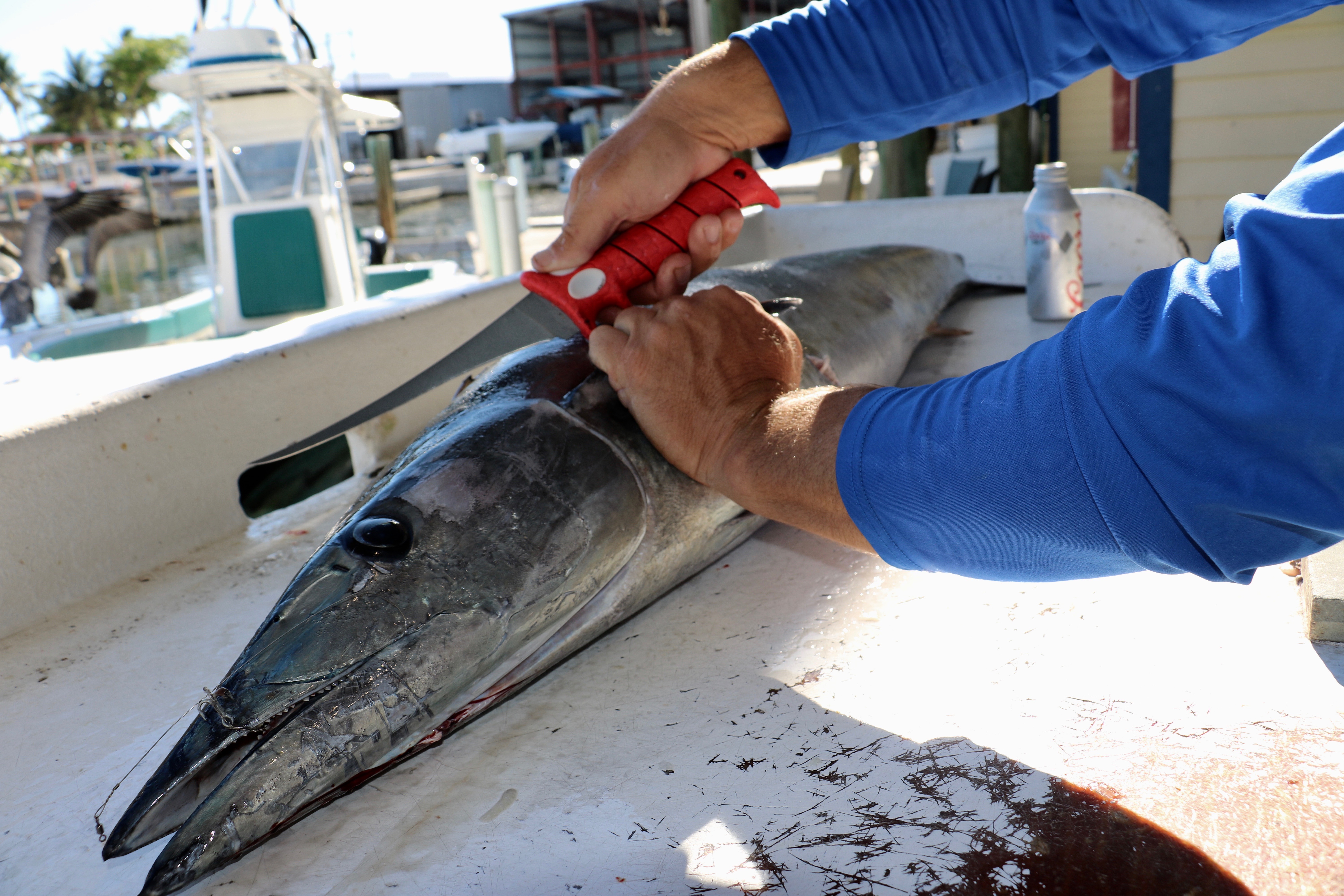 The first half of the day flew by and things started to feel a lot like the quintessential Key West mixed bag days that you see on the shows (like Local Knowledge) or read about in the numerous fishing publications. But it was time to focus on the task at hand, snagging a couple Speedos for bait. Rush took a call over the radio and a buddy boat has chummed up a big school for us to slide in on. Here’s yet another uniquely badass part of the Keys from a deep water, California angler’s perspective, our buddy boat floated their anchor line with a poly ball for us to pick up. So just like that, we were on the exact spot with our target bait at the surface ready to eat.