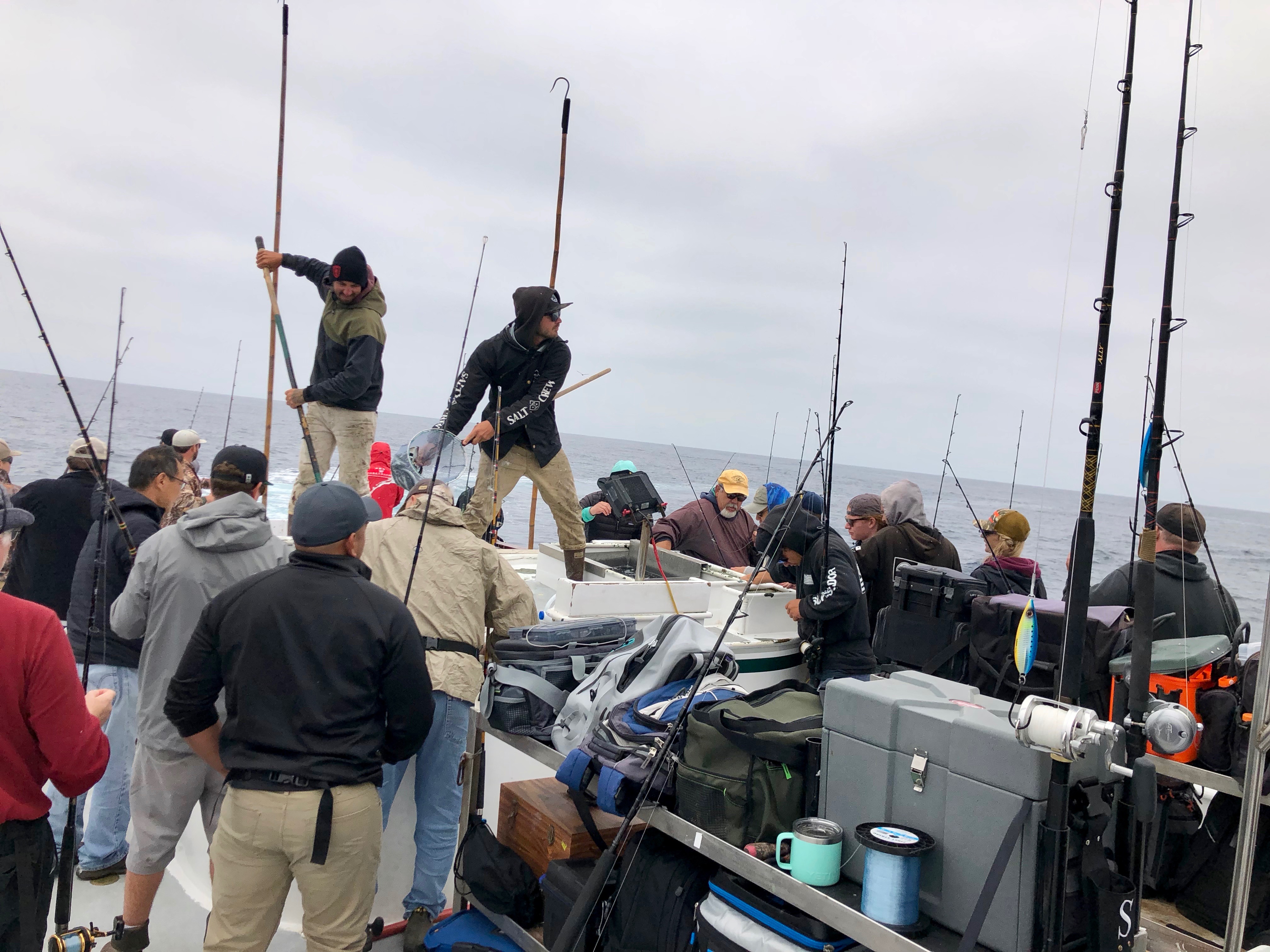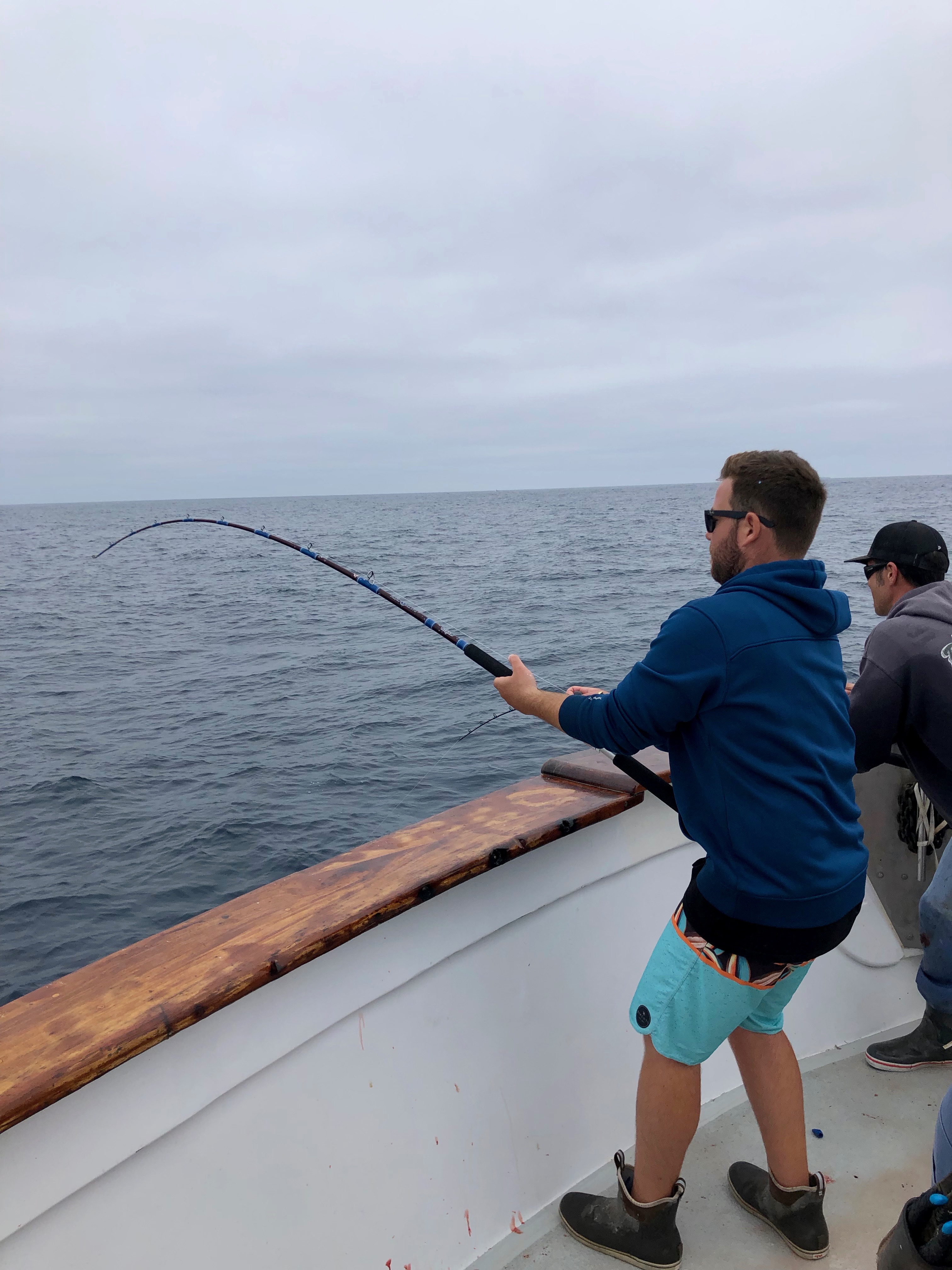 Now more than ever those words set in. He had put us on good schools of fish, and I hadn’t capitalized yet. It was time to put my head down and grind through every opportunity for the rest of the trip. We slid in on another school of fish and crew jumped into action to fire them up. I dropped my sardine off the stern, and it took off like a rocket. No longer than 30 seconds, my spool spun to the unmistakable speed of being bit.