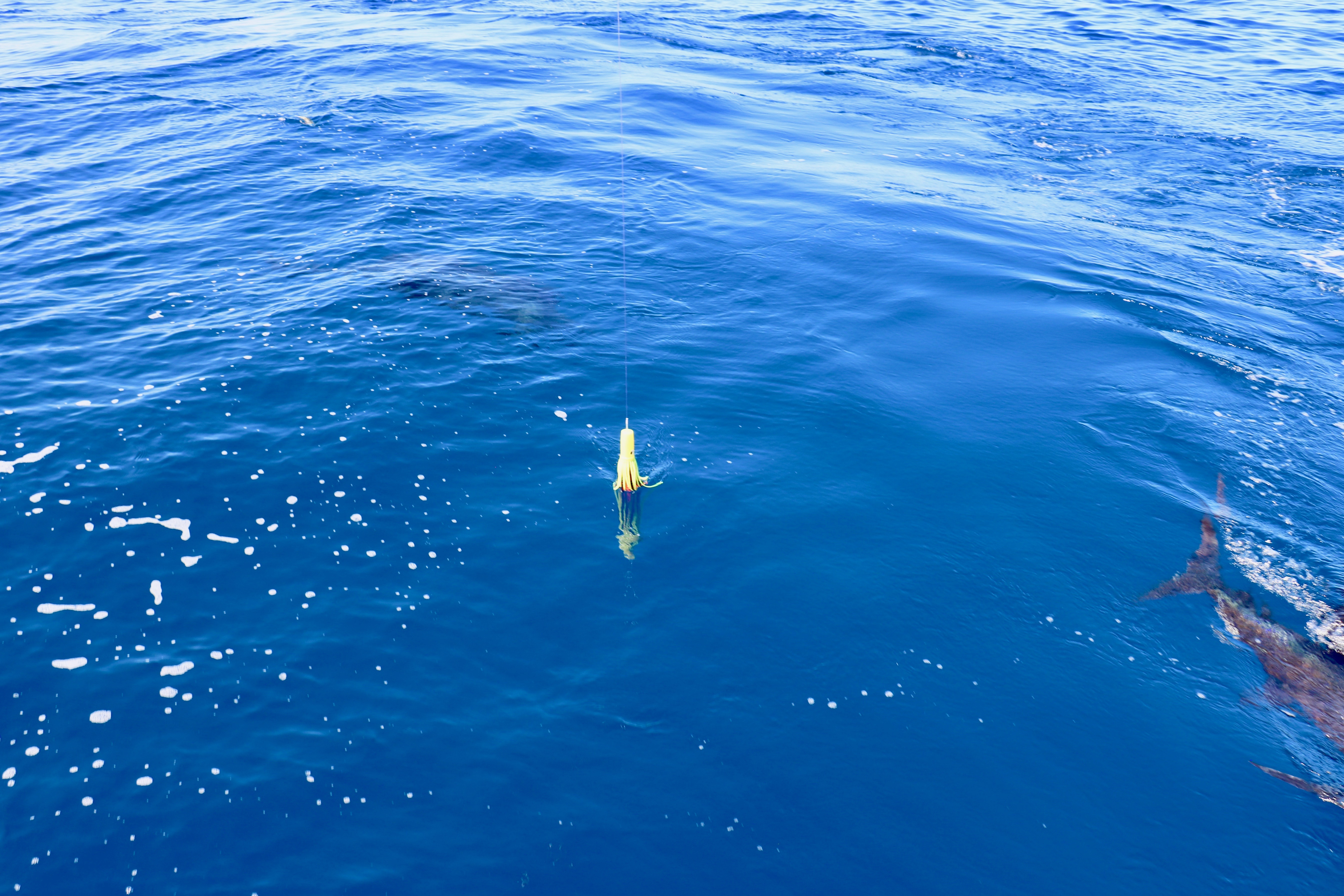 Once again we deployed our spread but this time I opted to lend as hand. There is no better way to learn than by actually doing and with an eager to coach crew, we had lines back in with little downtime. Although they weren’t to be in very long as we turned sharp and motored towards something floating in the mystically blue water ahead.