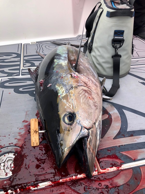 - Avoid Distractions & Temptation – this one will be a tough as old habits die slowly for me. We took only the tools, bait, and mindset needed for deep drop swordfishing only. No jig sticks or live bait sticks or other items that would have tempted us (or at least me) into chasing the foaming Yellowfin Tuna next to our boat while at drift. One goal, eyes on the prize style fishing.
