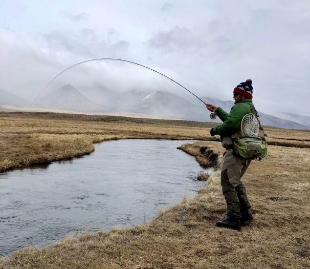 We grabbed our gear and hiked into the locally famous Upper Owens river. There were steady winds with noticeable gusts sprinkled in which wouldn’t make a rookie caster’s life any easier. But Tom was very tactful about how we were going to fish the river and I would soon come to find out that positioning was everything here. Wind or no wind – positioning and setting up accordingly makes or breaks a day on the “Upper O”, sometimes despite your skills as an angler.